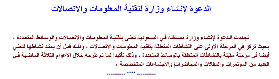 الدعوة لإنشاء وزارة لتقنية المعلومات والاتصالات